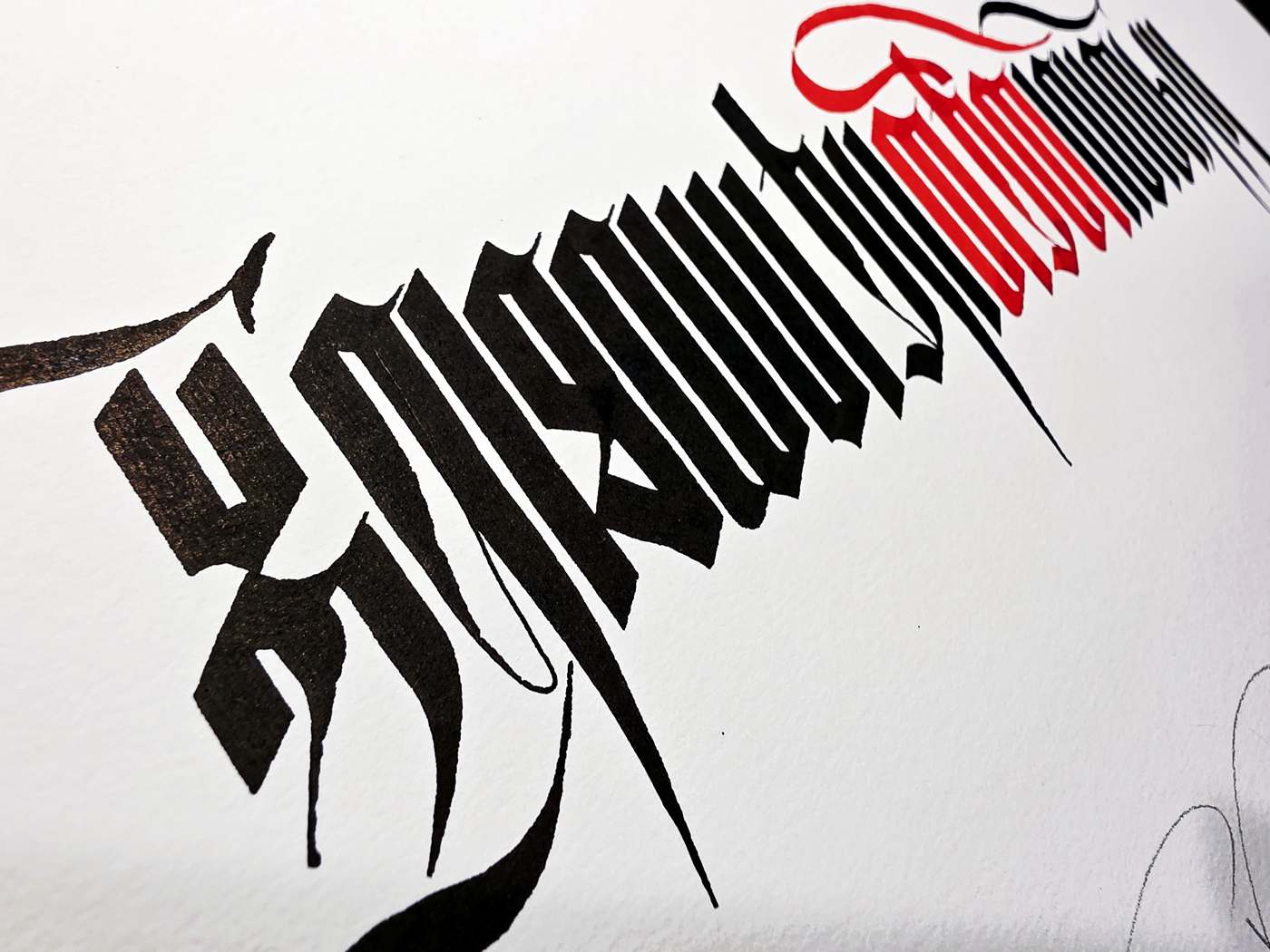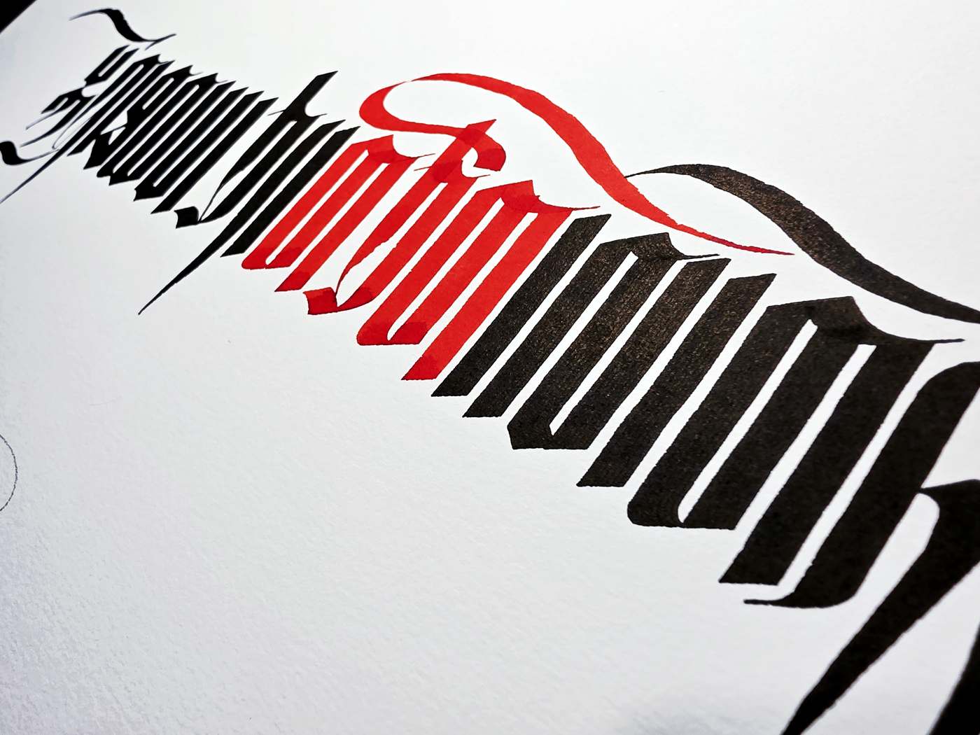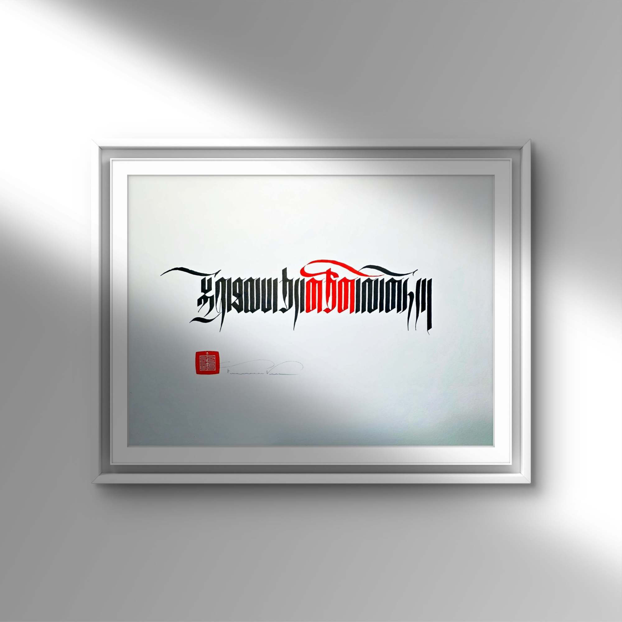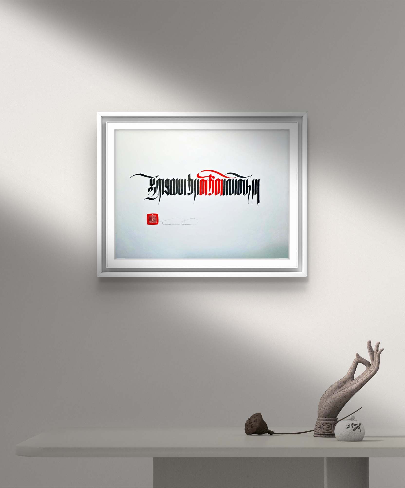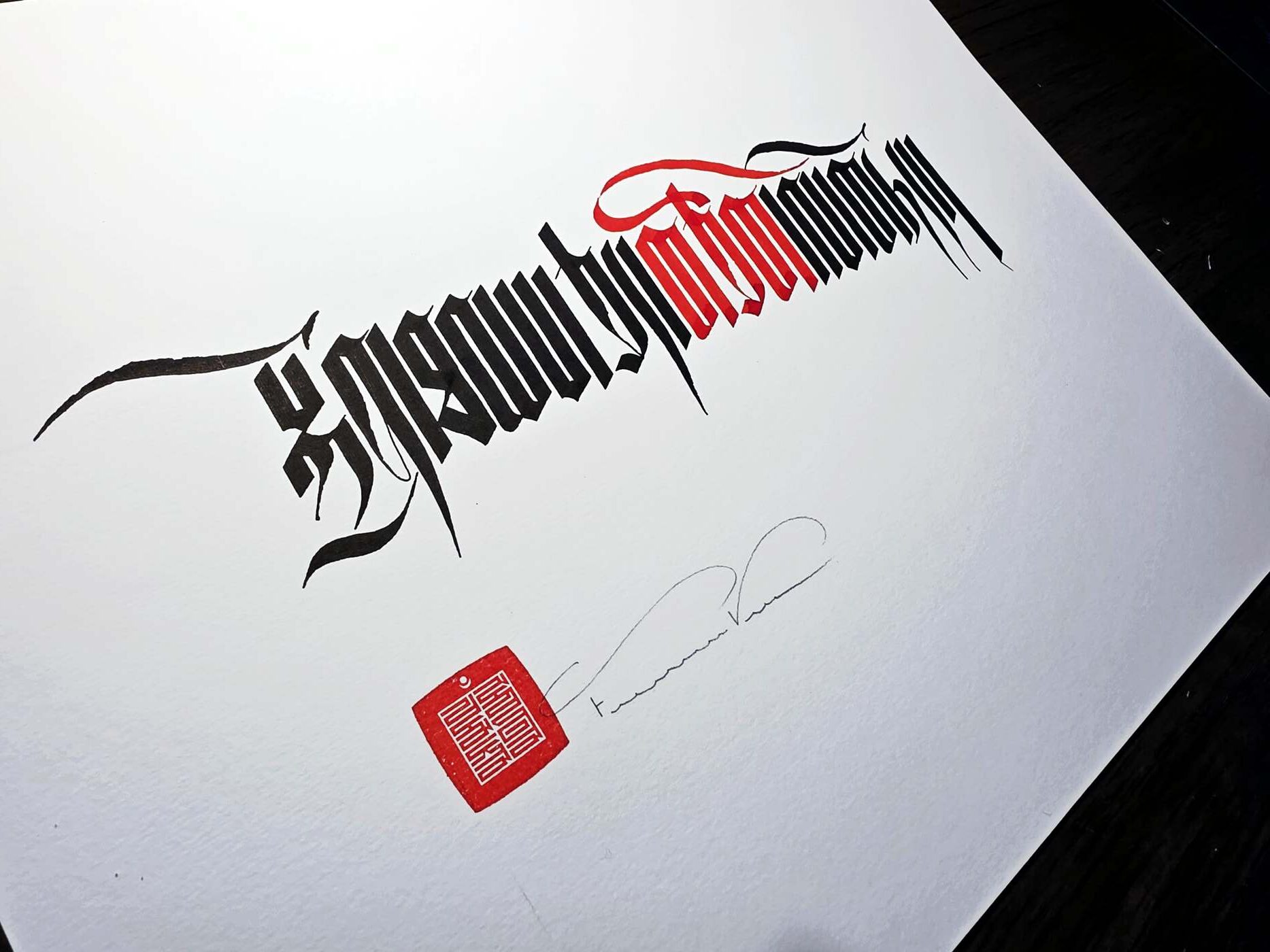 This piece is handwritten using a calligraphy pen. It’s made to order and includes artist’s seal.