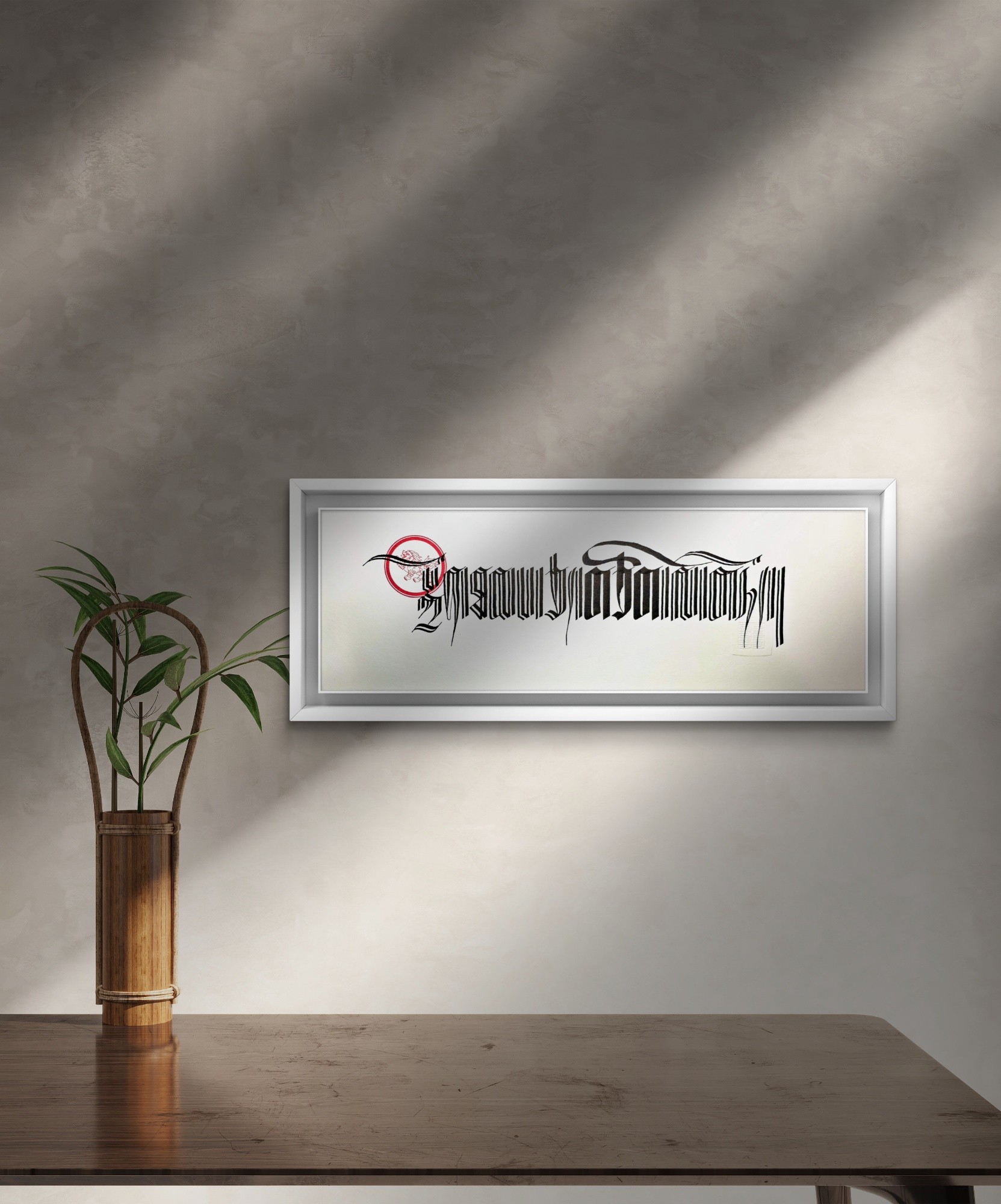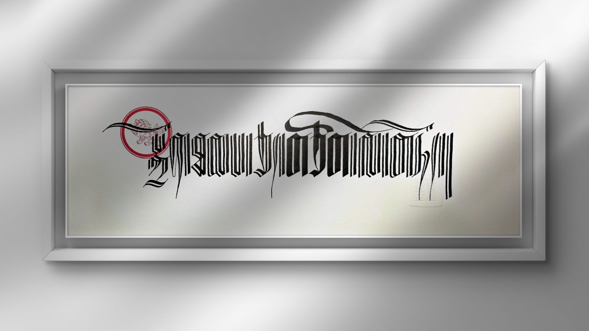 This piece is handwritten using a calligraphy pen. It’s made to order and includes artist’s seal.