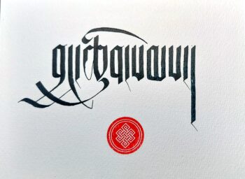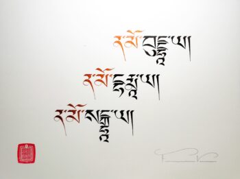 This piece features the Four Noble Truths taught by the Buddha. The main body is written in Tibetan Uchen, while the title above is in Tibetan Tsuring script.