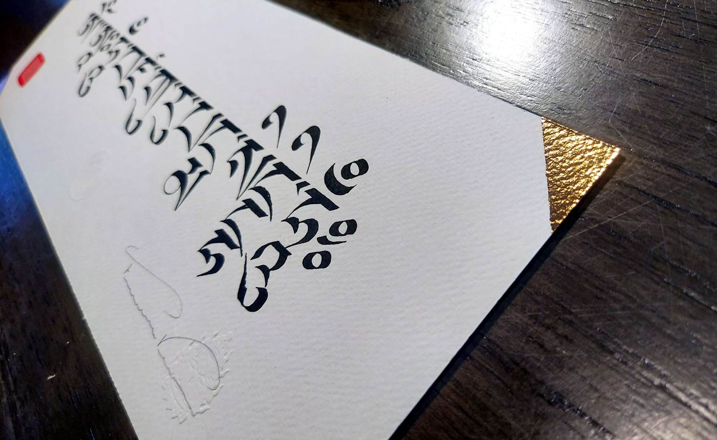 This piece is handwritten using a calligraphy pen. It’s made to order and includes artist’s seal.