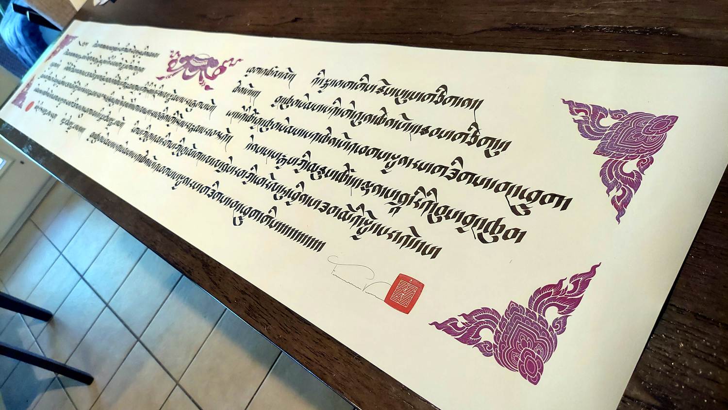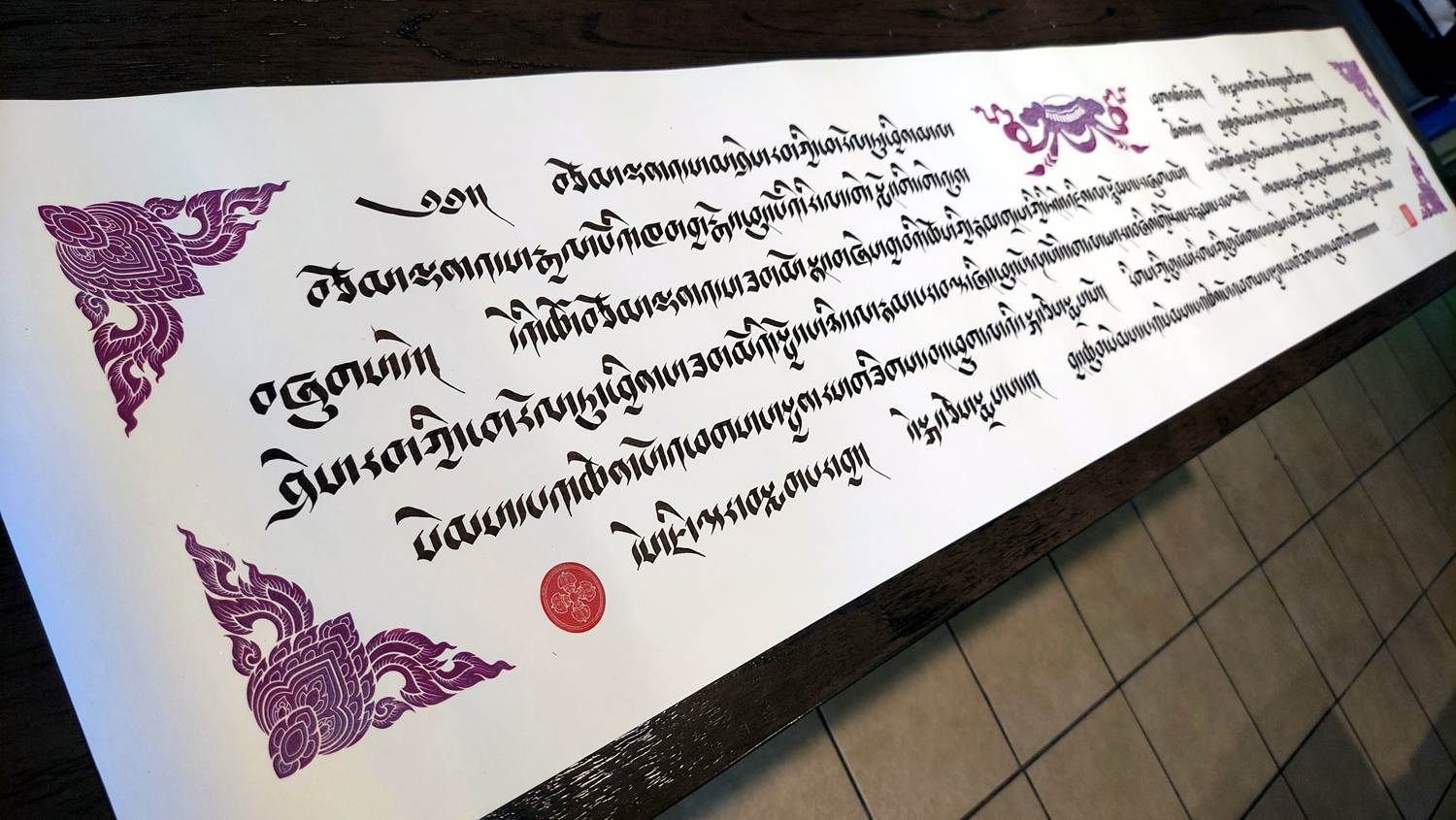This piece is handwritten using a calligraphy pen. It’s made to order and includes artist’s seal.