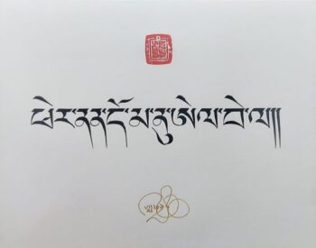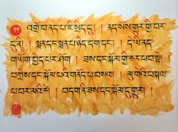 This piece features the Tibetan word for impermanence, “Mitagpa”. Fire treatment has been applied to convey the impermanent nature of all phenomena.