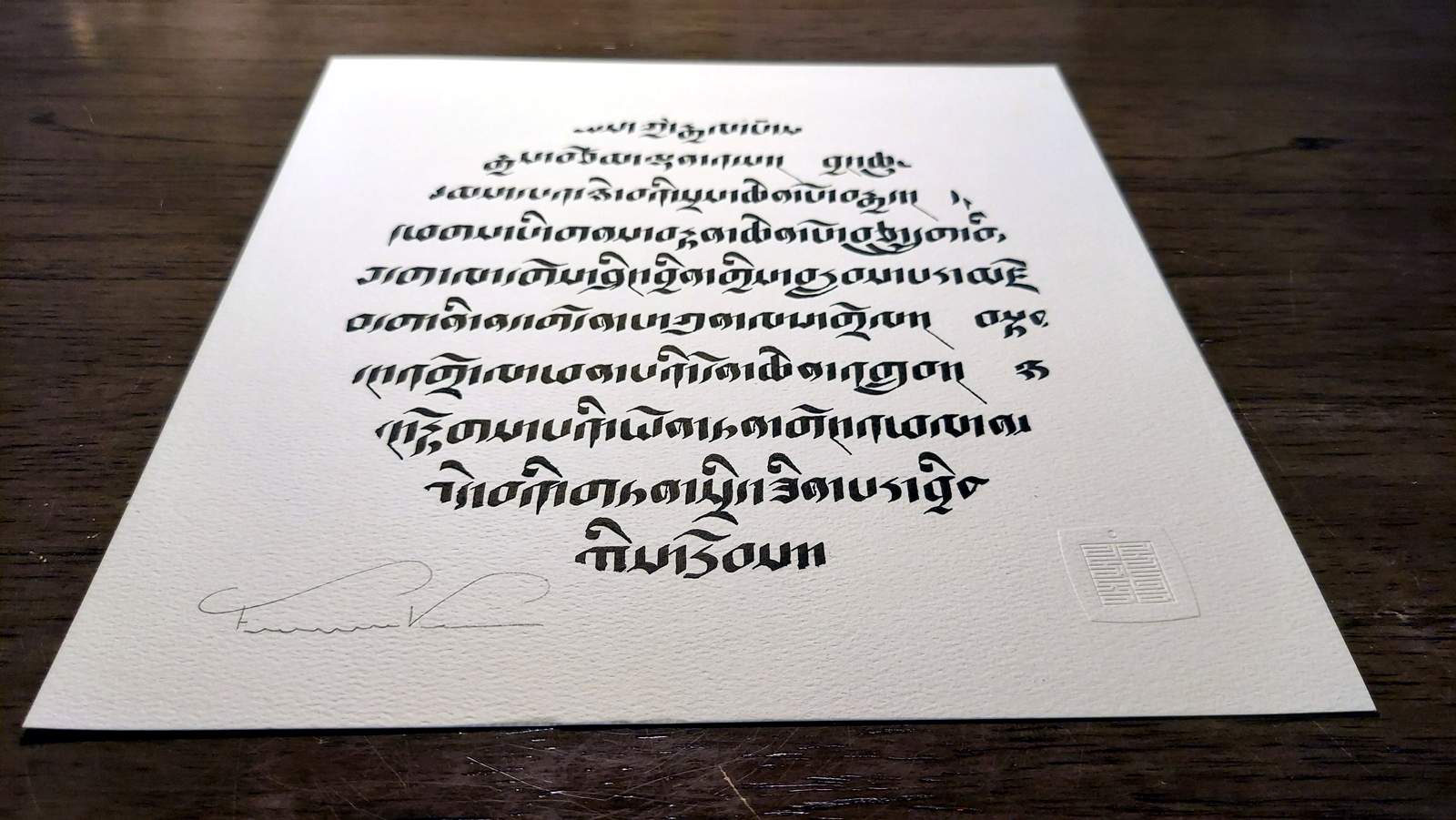 This piece is handwritten using a calligraphy pen. It’s made to order and includes artist’s seal.