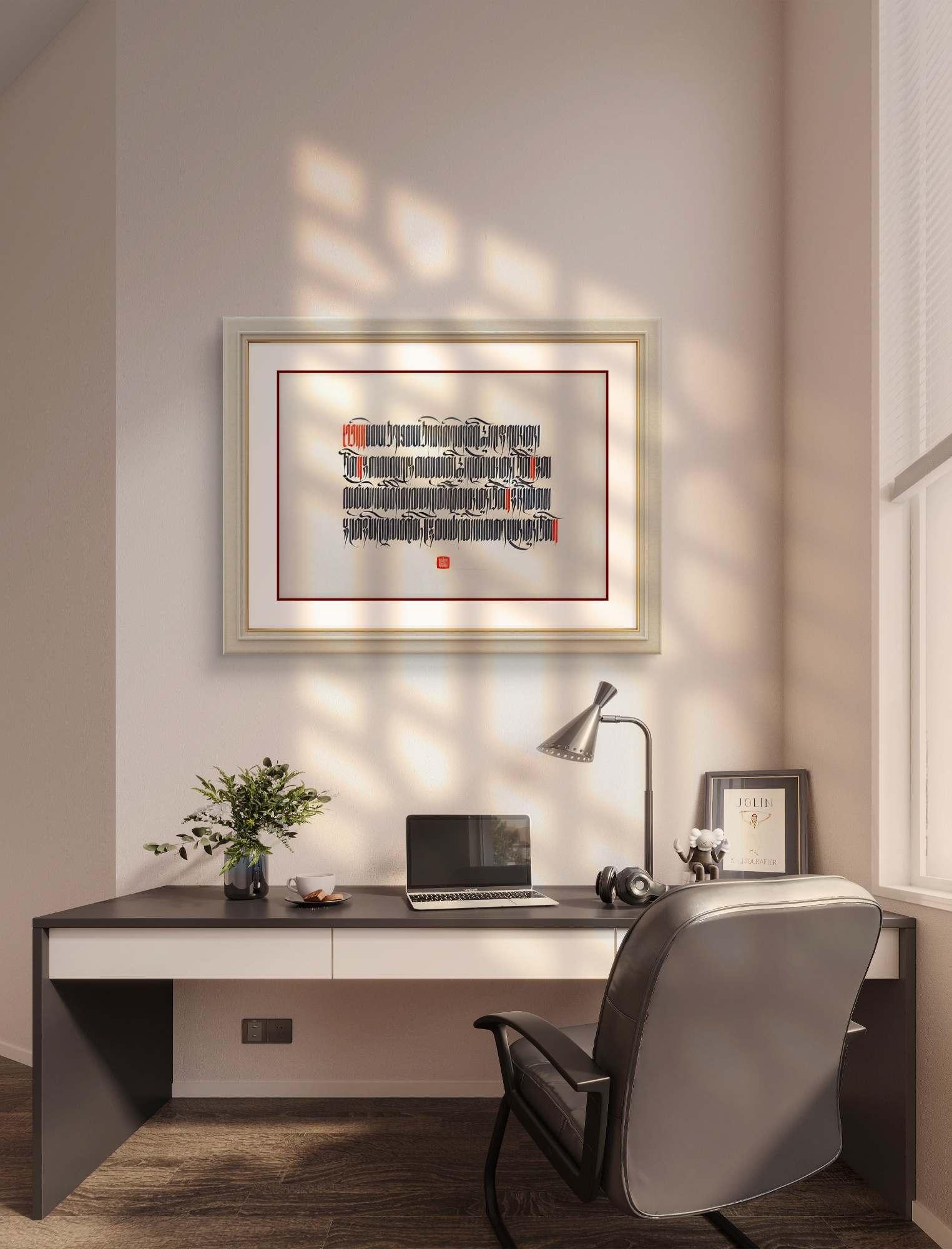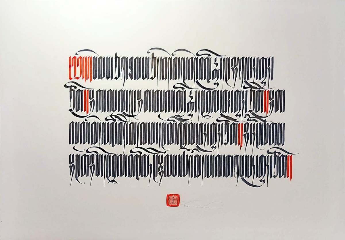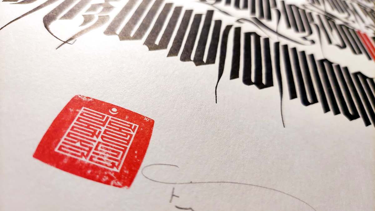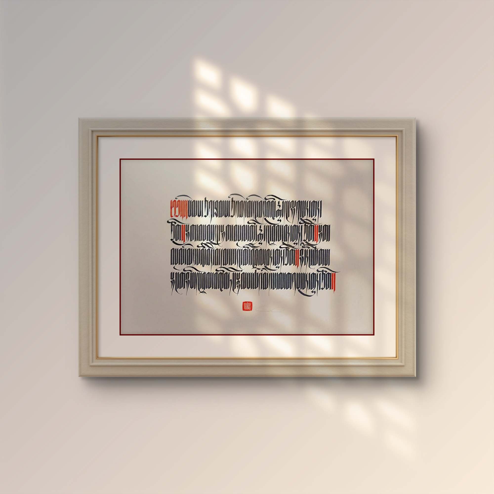 This piece is handwritten using a calligraphy pen. It’s made to order and includes artist’s seal.